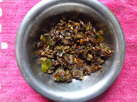 The morning marketing found me attracted to the small kutti kutti bitter gourds, and with no bargaining for the double palm full for a sum of 10 rupees, i returned after picking up other things .